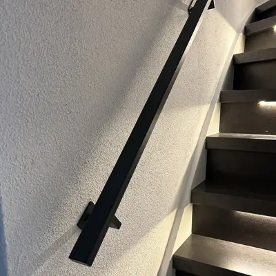 Handlauf anthrazit Komplettset - eckig (40x20 mm) - inklusive Handlaufträger Typ 11 + Befestigungsmaterial - nach Maß - von 30 cm bis 595 cm - Treppengeländer Metall mit dunkelgrauer Pulverbeschichtung fein strukturiert (matt) - RAL 7016 oder RAL 7021. Ein rechteckiger Handlauf anthrazit von 40x20 mm. Dieser Handlauf aus Stahl ist ausgestattet mit einer grauen Pulverbeschichtung. Hierbei können Sie wählen zwischen RAL 7016 (Anthrazitgrau) und RAL 7021 (Schwarzgrau). Ein ansprechender eckiger Treppenhandlauf Anthrazit aus Metall mit einem schicken Look, welcher zu einer breiten Skala von modernen Einrichtungsstilen passt.