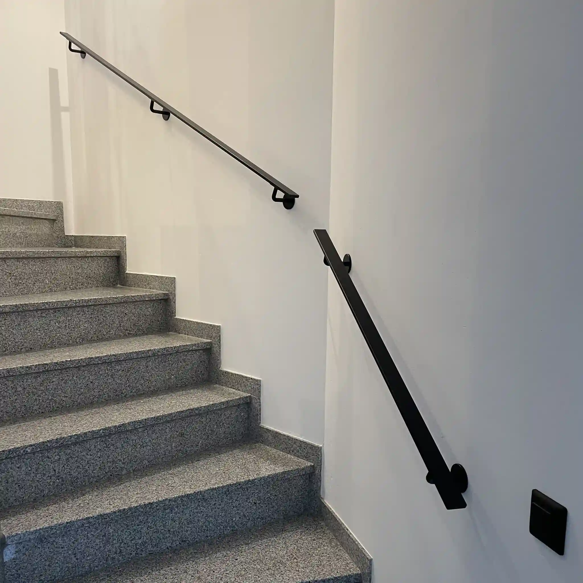 Handlauf anthrazit - eckig (40x10 mm) - mit Handlaufhaltern Typ 3 - nach Maß - Treppengeländer Metall / Stahl beschichtet - RAL 7016 oder 7021