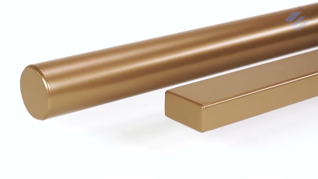 Handlauf Bronze Optik Komplettset - eckig (40x20 mm) - inklusive Handlaufträger Typ 16 + Befestigungsmaterial - nach Maß - von 30 cm bis 595 cm - Treppengeländer Metall mit brauner "Bronze / Messing / Gold / Kupfer Look" Metallic-Pulverbeschichtung (glatt). Ein rechteckiger Handlauf mit Bronze-Optik von 40x20 mm. Dieser Handlauf Stahl ist mit einer speziellen 'Gelbmetall'-Pulverbeschichtung versehen, eine Mischung aus Messing und Gold, mit einem Hauch von Bronze und Kupfer und das mit einem sanften Glanz für eine warme Ausstrahlung. Ein moderner eckiger Treppenhandlauf aus Metall mit einem luxuriösen Look, ideal geeignet als stilvoller Blickfang in Ihrer trendigen Innenausstattung.