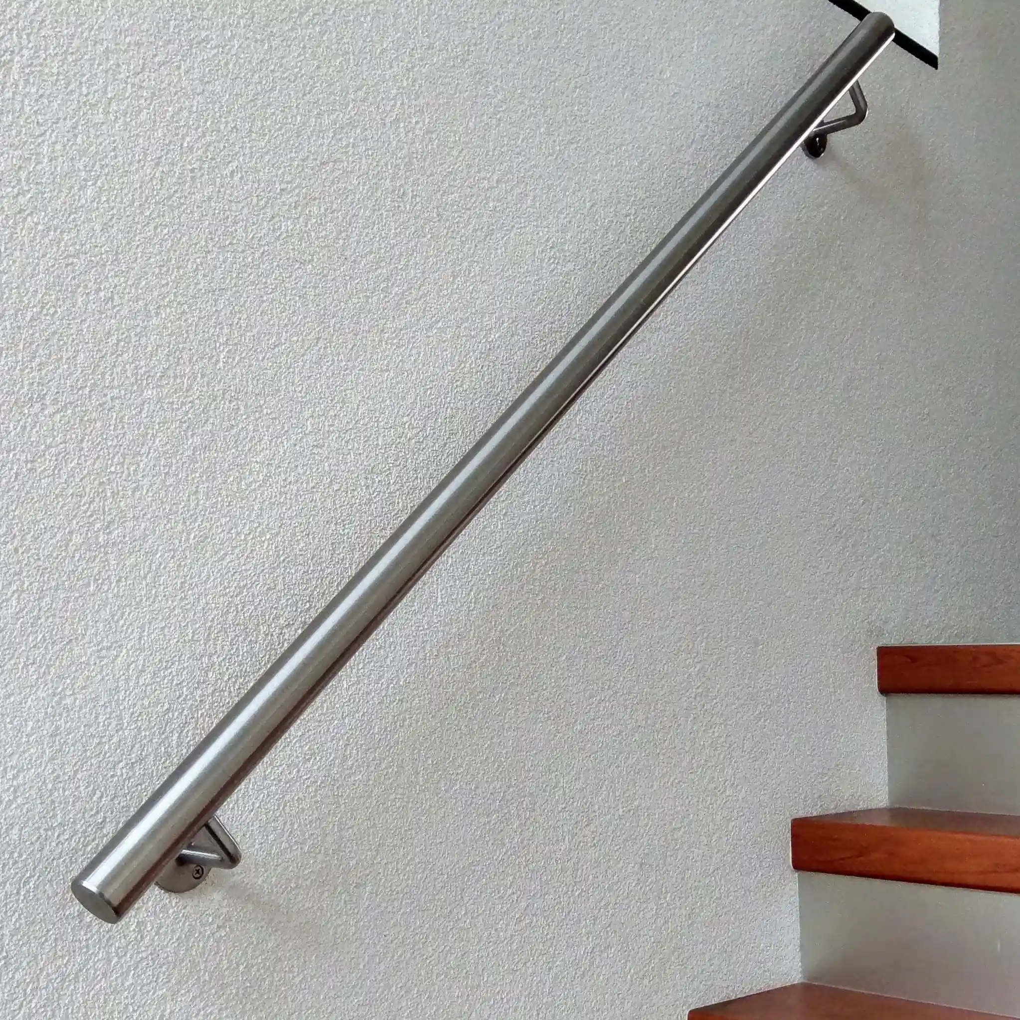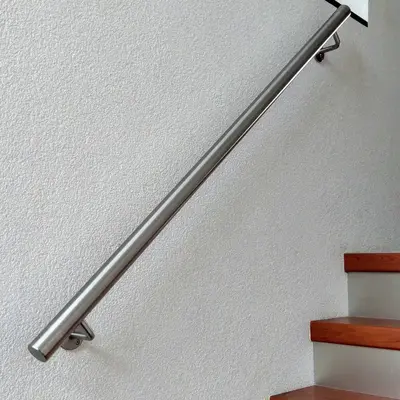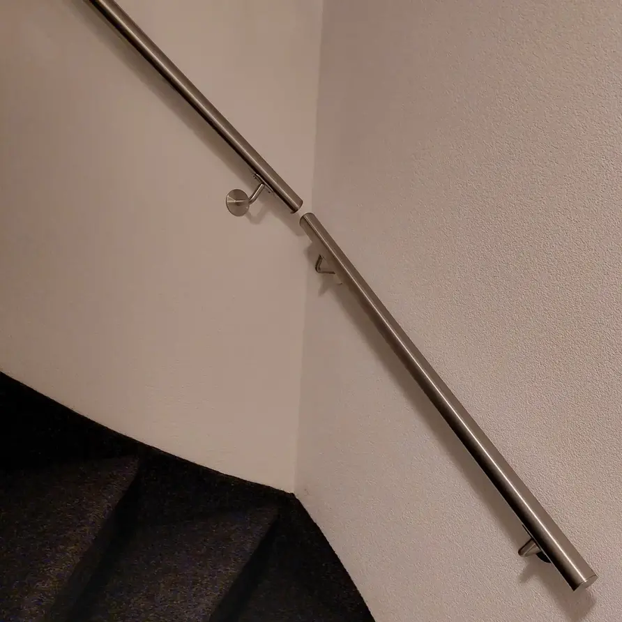Handlauf Edelstahl Komplettset - rund - inklusive Handlaufträger Typ 3 + Befestigungsmaterial - nach Maß - von 30 cm bis 595 cm - Treppengeländer Edelstahl V2A (304) gebürstet. Ein runder Handlauf aus Edelstahl 304 gebürstet (für drinnen) mit einem Durchmesser von 42,4 mm. Ein klassischer runder Treppenhandlauf aus Edelstahl mit einem modernen Look, der zu einer breiten Skala von Wohn- und Einrichtungsstilen wunderbar passt.