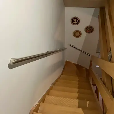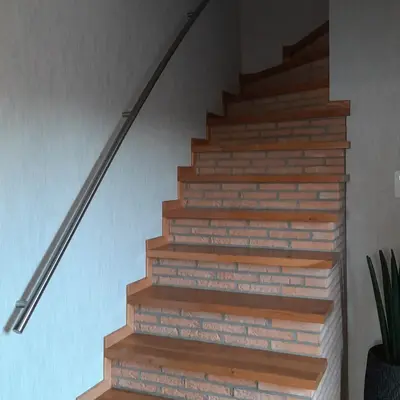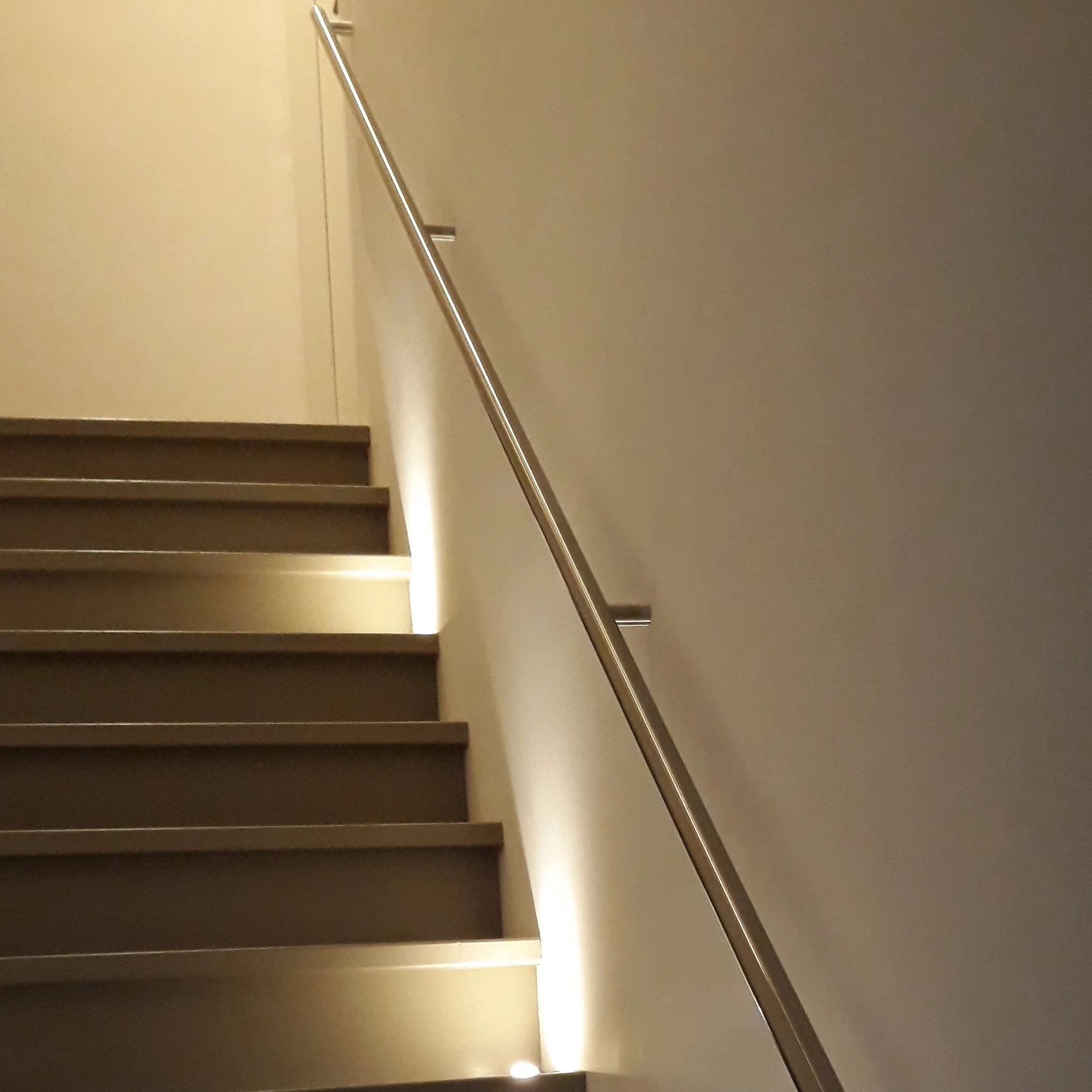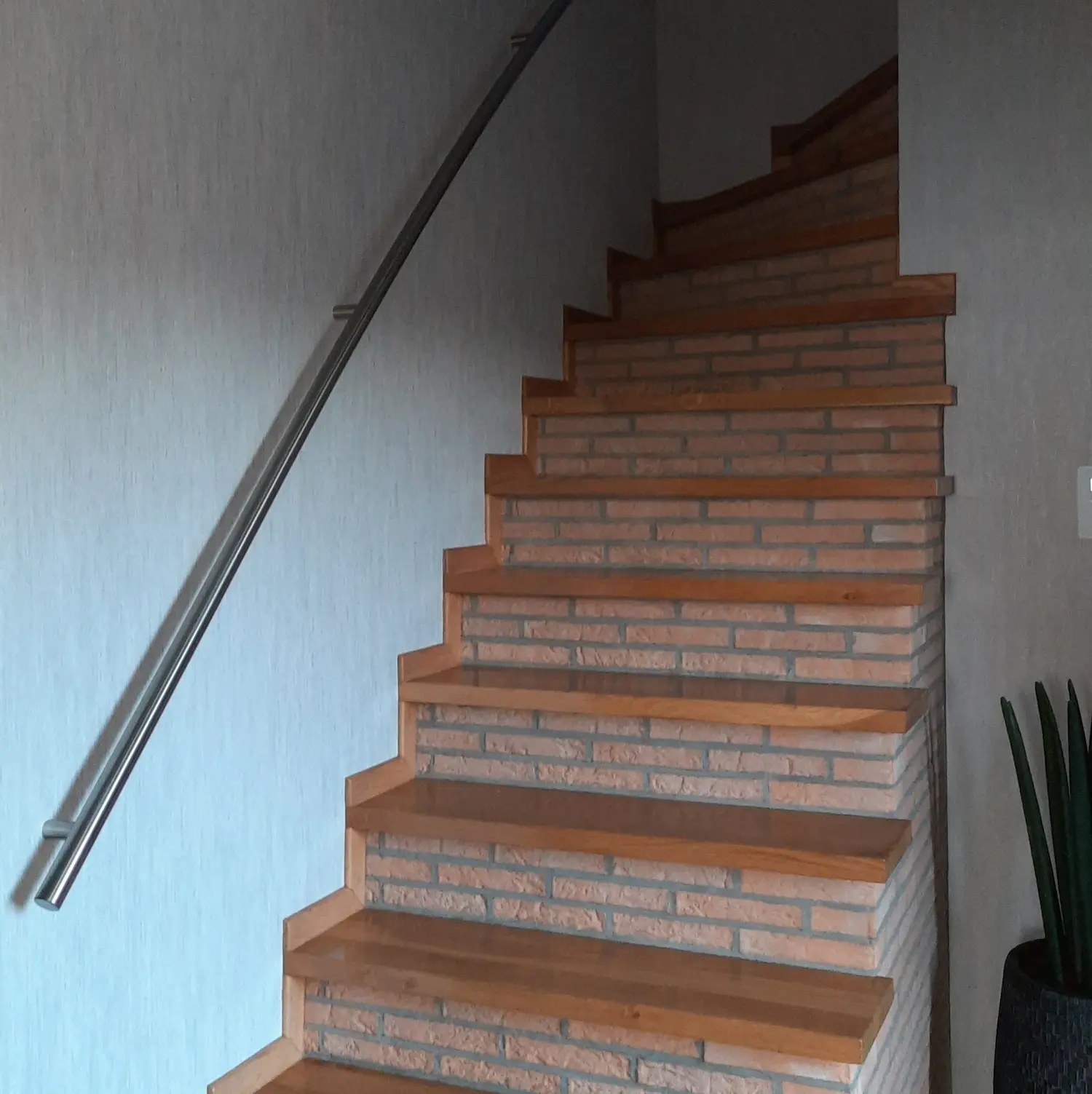 Ein runder schmaler Handlauf aus Edelstahl V2A (304) gebürstet mit einem Durchmesser von 33,7 mm. Ein eleganter Treppenhandlauf mit schöne Typ 14 Halterungen. Dieses Treppengeländer wird nach Maß gefertigt und mit den kompletten Befestigungsmaterialien ge Lesen Sie mehr