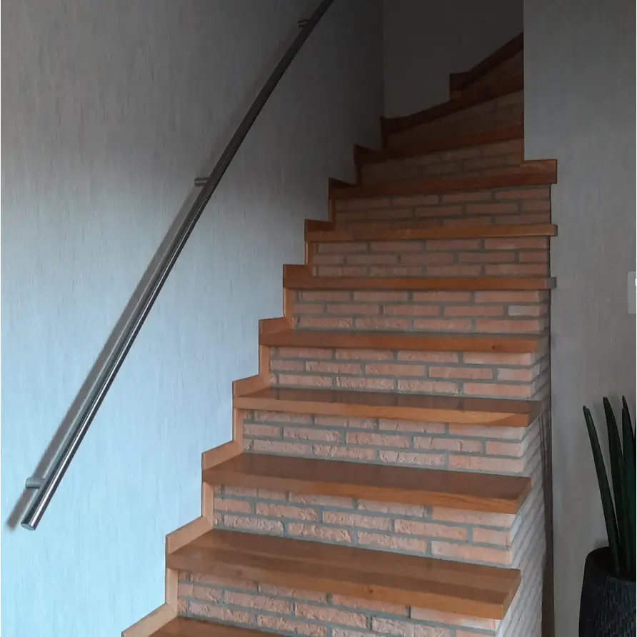 Sie erhalten dieses Treppenhandlauf-Set mit Stützen Typ 14, inklusive aller benötigten Befestigungsmaterialien. Der Handlaufhalter Typ 14 ist eine moderne Stütze mit einer minimalistischen Formgebung und "unsichtbarer" Montage (mit Stockschraube) ohne sichtbare Schrauben. Dieser Handlaufträger wird in einer parallelen Linie zu dem Treppengeländer angebracht und hat eine besonders moderne, hochwertige Ausstrahlung. Dieser Treppenhandlauf eignet sich auch für eine horizontale und vertikale Positionierung. Stellen Sie sich zum Beispiel einen Handlauf auf einer gemauerten Treppenumrandung vor.