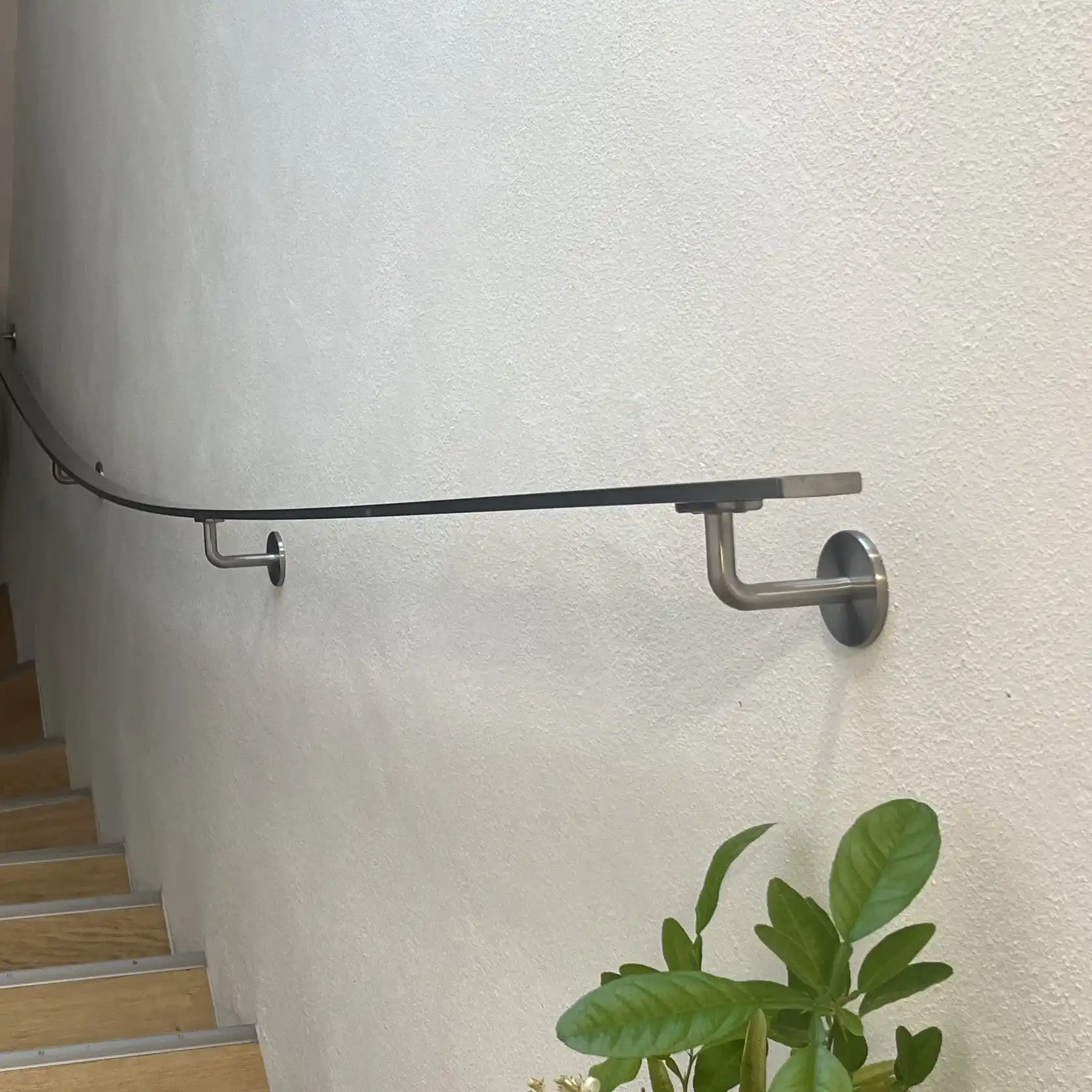 Befestigung an der Wand: Mit 1 Stockschraube (unsichtbar). Sie empfangen - pro Handlaufhalterung - 1 Edelstahl Stockschraube M8 + 1 Dübel rund M10.