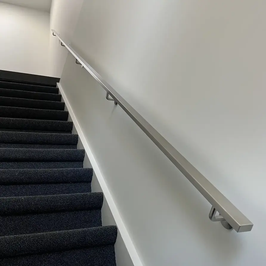 Ein rechteckiger Handlauf aus Edelstahl V2A (304) gebürstet von 40x20 mm: Ein handlicher Treppenhandlauf ohne Halter. Dieses Treppengeländer wird nach Maß gefertigt. Lesen Sie mehr
