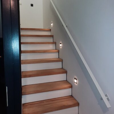 Ein rechteckiger Handlauf von 40x10 mm in einer RAL Farbe Ihrer Wahl. Schlanker Metall-Treppenhandlauf mit moderne Typ 11 Halterungen. Dieses Treppengeländer wird nach Maß gefertigt und mit den kompletten Befestigungsmaterialien geliefert. Lesen Sie mehr