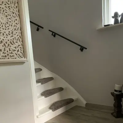 Ein rechteckiger Handlauf von 40x20 mm in einer RAL Farbe Ihrer Wahl. Moderner Metall-Treppenhandlauf mit moderne Typ 11 Halterungen. Dieses Treppengeländer wird nach Maß gefertigt und mit den kompletten Befestigungsmaterialien geliefert. Lesen Sie mehr
