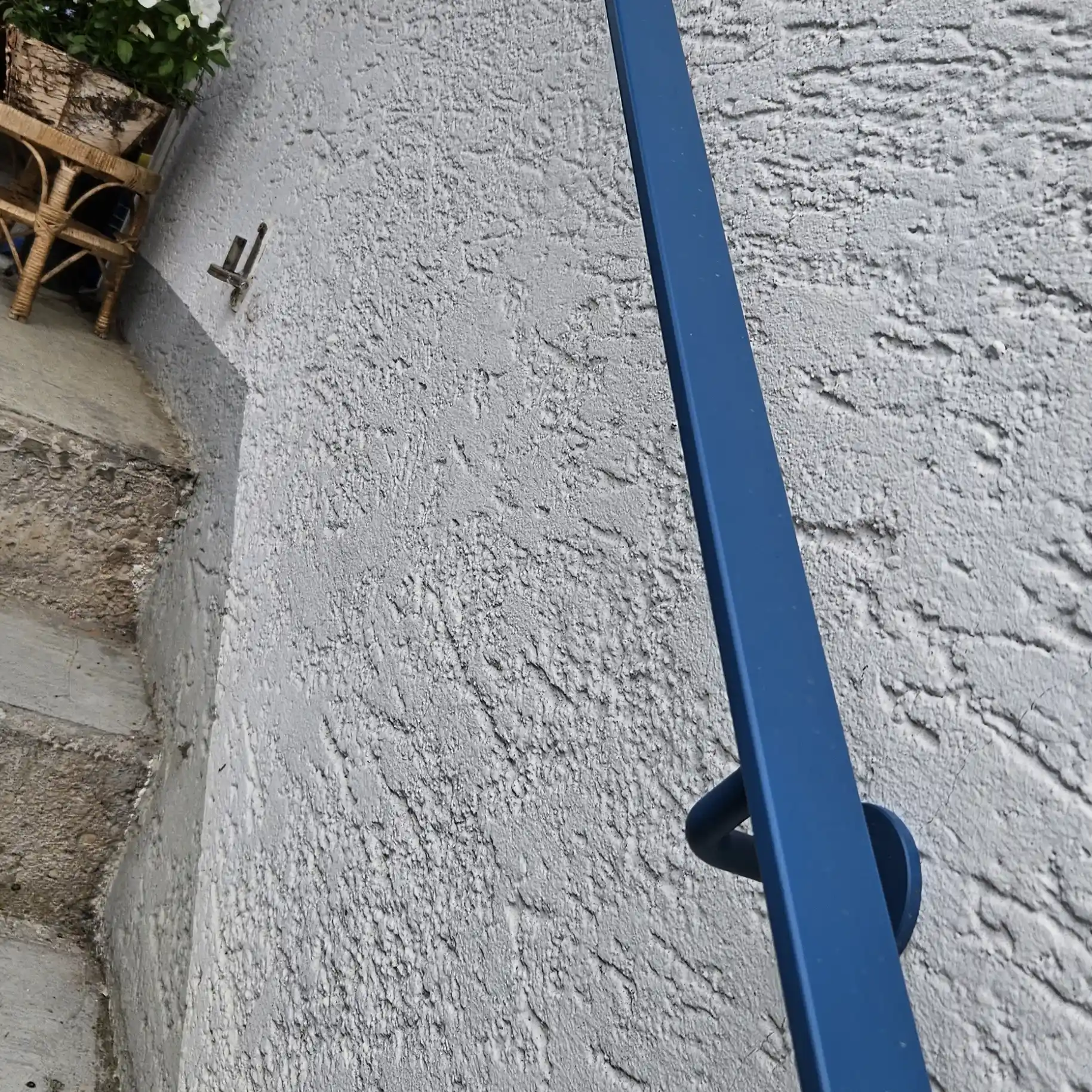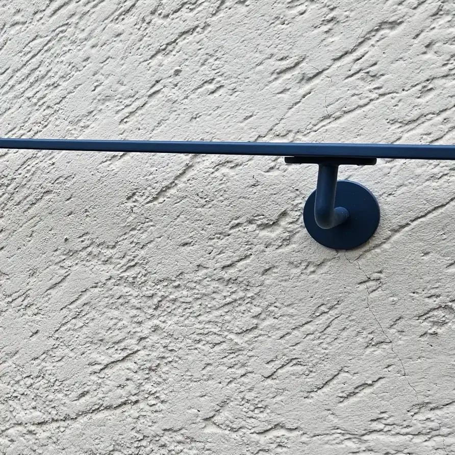Ein rechteckiger Handlauf von 40x10 mm in einer RAL Farbe Ihrer Wahl. Schlanker Metall-Treppenhandlauf für außen mit populäre Typ 3 Halterungen. Dieses Treppengeländer wird nach Maß gefertigt und mit den kompletten Befestigungsmaterialien geliefert. Lesen Sie mehr