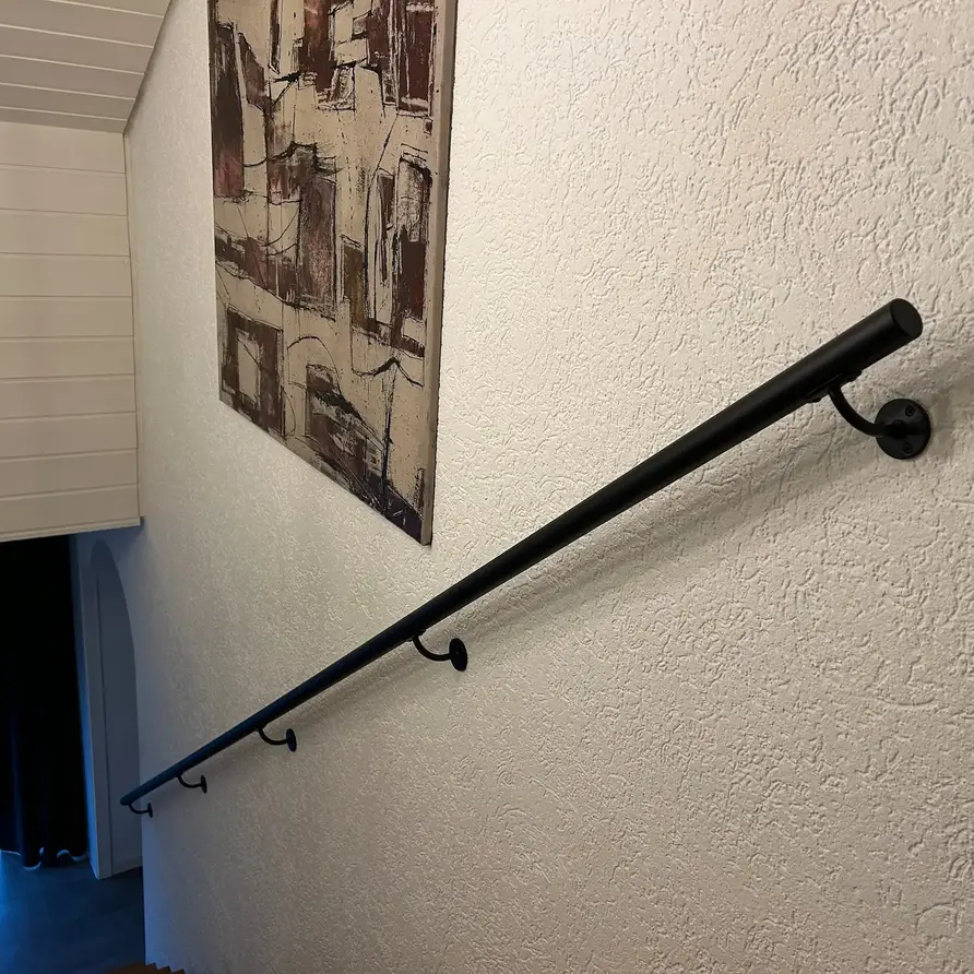 Ein runder Handlauf schwarz mit einem Durchmesser von 42,4 mm. Ein ansprechender Treppenhandlauf schwarz aus Metall mit klassische Typ 2 Halterungen. Dieses Treppengeländer wird nach Maß gefertigt und mit den kompletten Befestigungsmaterialien geliefert. Lesen Sie mehr