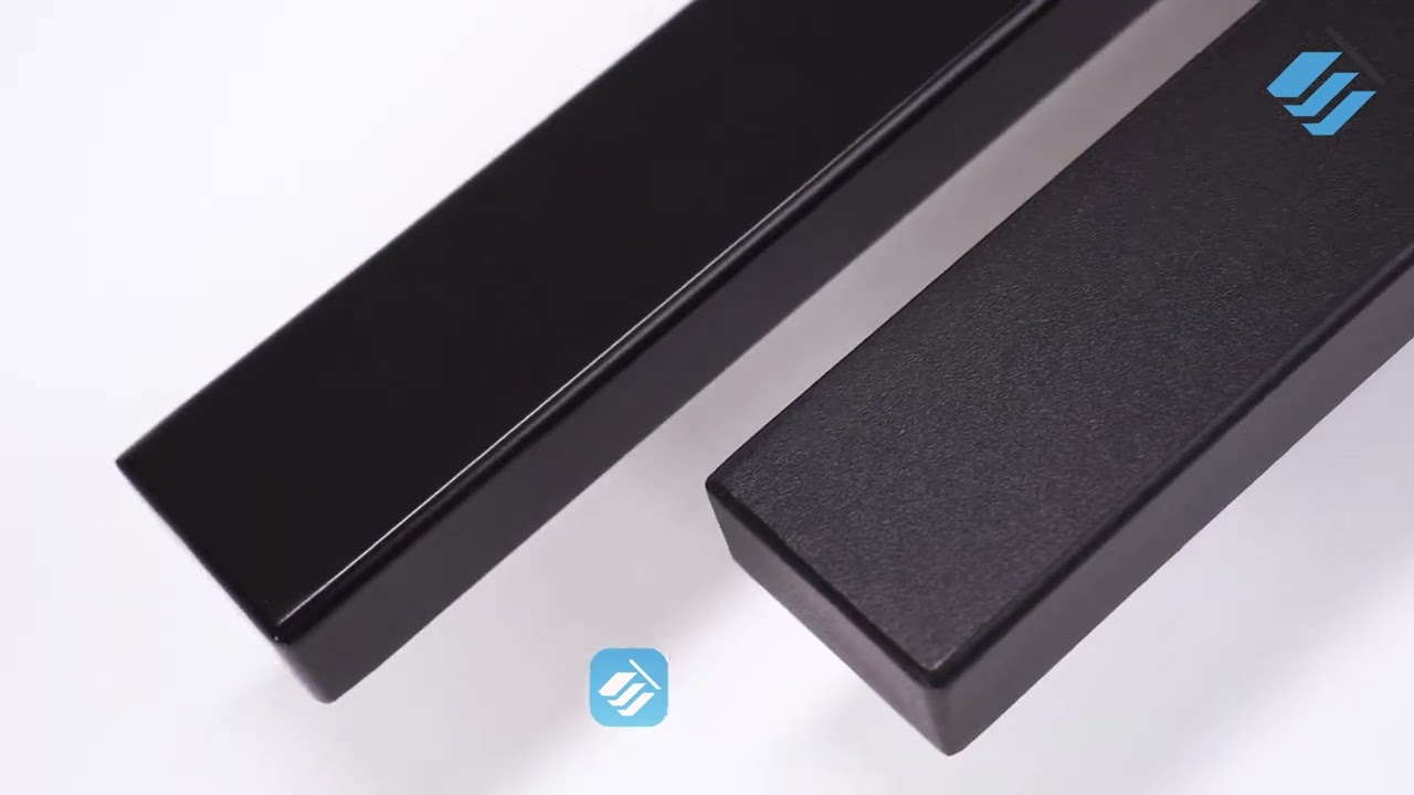 Handlauf schwarz Komplettset - eckig (40x15 mm) - inklusive Handlaufträger Typ 11 + Befestigungsmaterial - nach Maß - von 30 cm bis 595 cm - Treppengeländer Metall / Stahl beschichtet - RAL 9005. Ein Handlauf schwarz eckig von 40x15 mm. Dieser Handlauf aus Stahl wird mit einer schwarzen Pulverbeschichtung in der Farbe RAL 9005 versehen. Hierbei können Sie wählen zwischen glatt und fein strukturiert. Ein stilvoller rechteckiger Treppenhandlauf schwarz aus Metall mit einem robusten Look, ideal geeignet für moderne Innenräume.