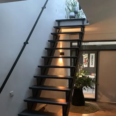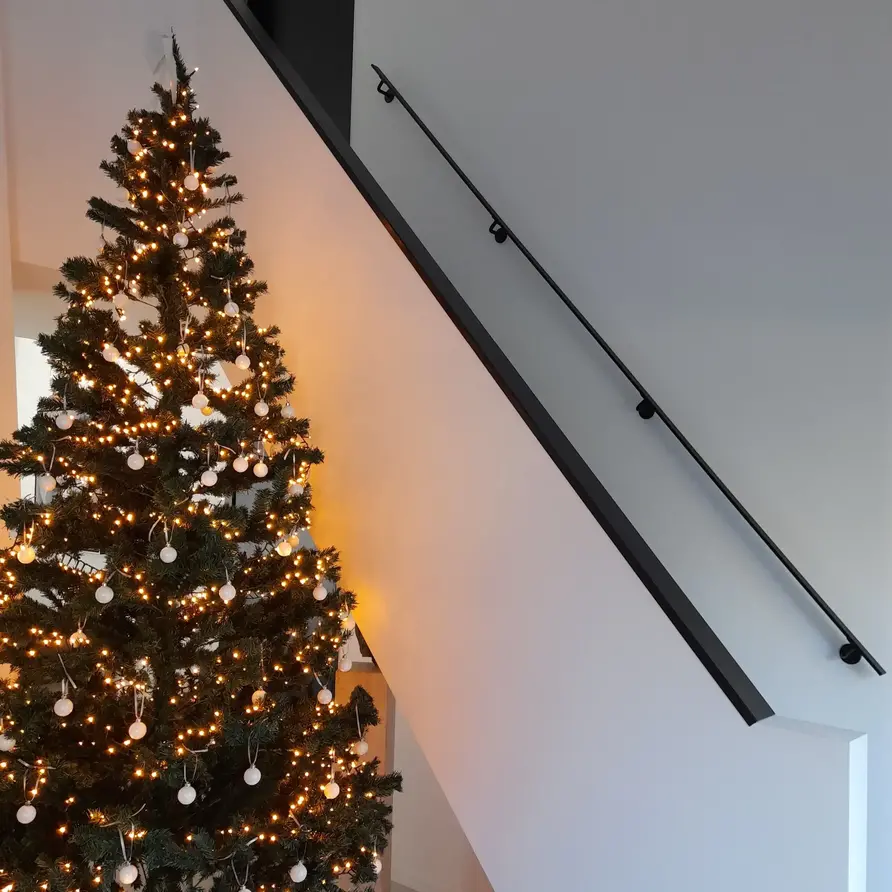 Ein Handlauf schwarz eckig von 40x10 mm: Ein schlanker Treppenhandlauf schwarz aus Metall mit populäre Typ 3 Halterungen. Dieses Treppengeländer wird nach Maß gefertigt und mit den kompletten Befestigungsmaterialien geliefert. Lesen Sie mehr