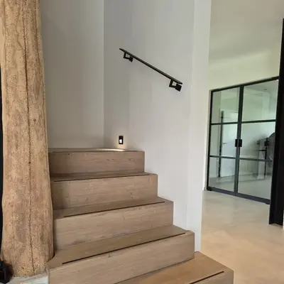 Sie erhalten dieses Treppenhandlauf-Set mit Stützen Typ 11, inklusive aller benötigten Befestigungsmaterialien. Die Handlaufhalterung Typ 11 ist ein moderner Träger mit geradlinigem Design und "unsichtbarer Montage" (mit Stockschraube) ohne sichtbare Schrauben. Der Typ 11 Handlauf-Halter ist in zwei Ausführungen erhältlich: standard und verkürzt. Wobei der Abstand zwischen der Wand und der Mitte des Treppenhandlaufs 89 mm beträgt. Ihr Treppenhandlauf wird bei Handlauf-Experte.de - in unserer eigenen Fachwerkstatt von erfahrenen Handwerkern - auf Maß gefertigt. Die Handläufe werden auf den Millimeter genau auf die vorgegebene Länge zugeschnitten, vorgebohrt und wie gewünscht bearbeitet. Wir führen diese Arbeiten mit viel Freude und Liebe zum Detail komplett intern aus.