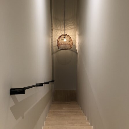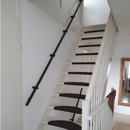 Befestigung am Treppengeländer: Sie können den Handlauf in den Halter schieben, was eine sehr flexible Montage erlaubt. Stellen Sie dann die Stütze mit einer Inbusschraube fest.