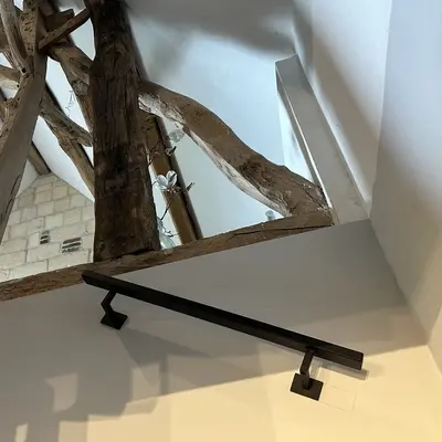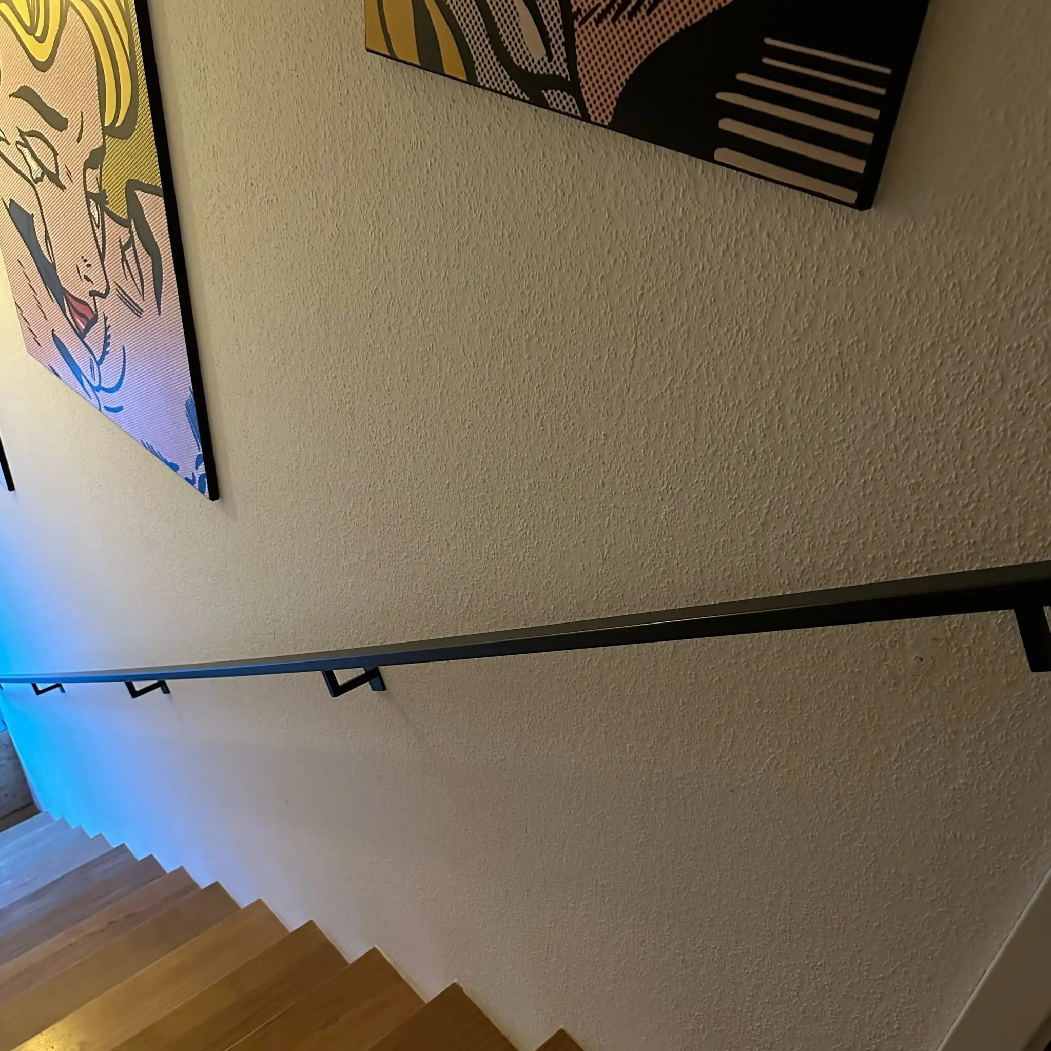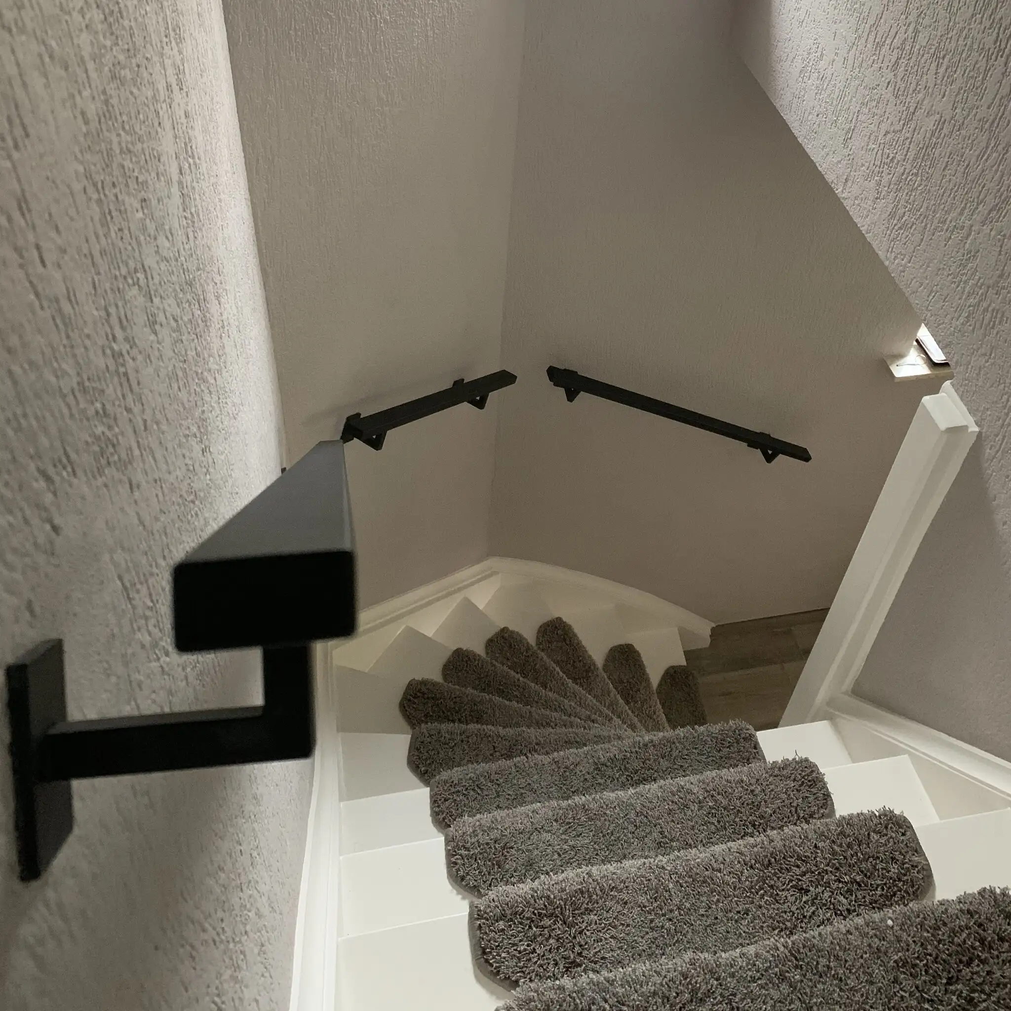 Ein Handlauf schwarz eckig von 40x20 mm: Ein griffiger Treppenhandlauf schwarz aus Metall mit moderne Typ 11 Halterungen. Dieses Treppengeländer wird nach Maß gefertigt und mit den kompletten Befestigungsmaterialien geliefert. Lesen Sie mehr