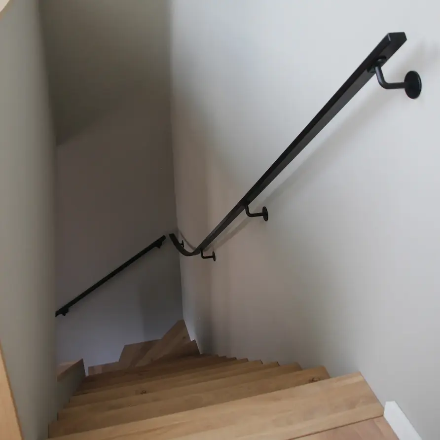 Ein Handlauf schwarz eckig von 40x20 mm: Ein griffiger Treppenhandlauf schwarz aus Metall mit populäre Typ 3 Halterungen. Dieses Treppengeländer wird nach Maß gefertigt und mit den kompletten Befestigungsmaterialien geliefert. Lesen Sie mehr