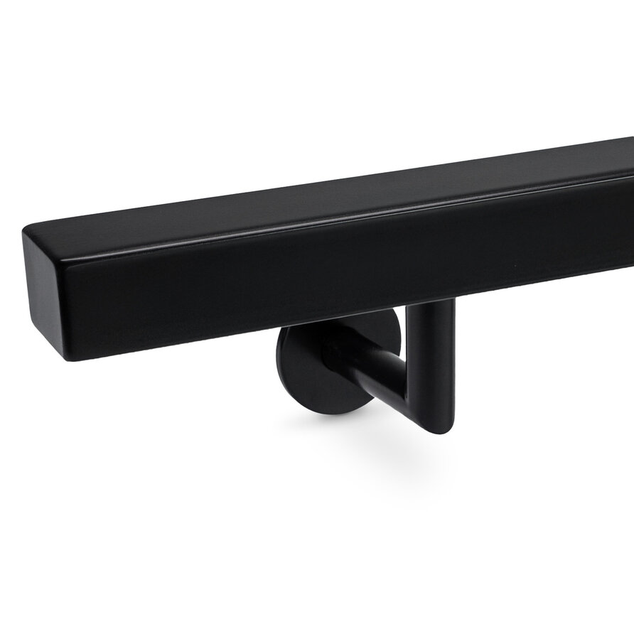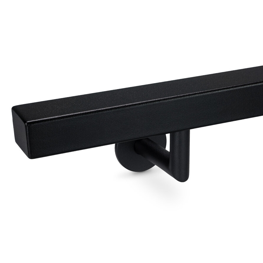 Handlauf schwarz Komplettset - viereckig (40x40 mm) - inklusive Handlaufträger Typ 3 Luxus + Befestigungsmaterial - nach Maß - von 30 cm bis 595 cm - Treppengeländer Metall / Stahl beschichtet - RAL 9005. Ein quadratischer Handlauf schwarz von 40x40 mm. Dieser Handlauf aus Stahl wird mit einer schwarzen Pulverbeschichtung in der Farbe RAL 9005 versehen. Hierbei können Sie wählen zwischen glatt und fein strukturiert. Ein robuster / eleganter eckiger Treppenhandlauf schwarz aus Metall mit einem soliden Look, ideal für eine Einrichtung im Industrial Style.