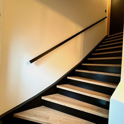 Ein Handlauf schwarz eckig von 50x20 mm: Ein einzigartiger Treppenhandlauf schwarz aus Metall mit geradlinige Typ 16 Halterungen. Dieses Treppengeländer wird nach Maß gefertigt und mit den kompletten Befestigungsmaterialien geliefert. Lesen Sie mehr