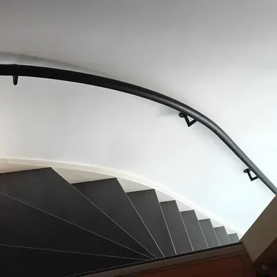 Ein runder Handlauf schwarz mit einem Durchmesser von 42,4 mm. Ein ansprechender Treppenhandlauf schwarz aus Metall mit trendigen Typ 3 Luxus Halterungen. Dieses Treppengeländer wird nach Maß gefertigt und mit kompletten Befestigungsmaterialien geliefert. Lesen Sie mehr