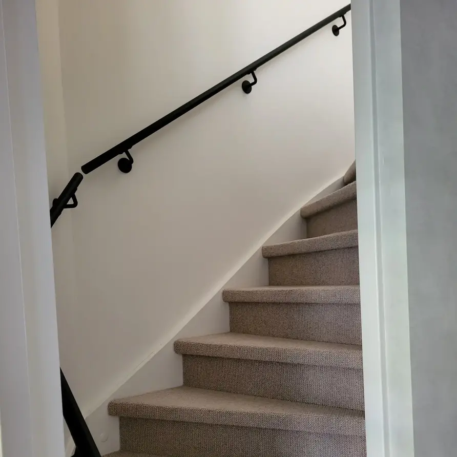 Ein runder schmaler Handlauf schwarz von 33,7 mm. Ein eleganter Treppenhandlauf schwarz für außen aus Metall mit ansprechende Typ 1 Halterungen. Dieses Treppengeländer wird nach Maß gefertigt und mit den kompletten Befestigungsmaterialien geliefert. Lesen Sie mehr