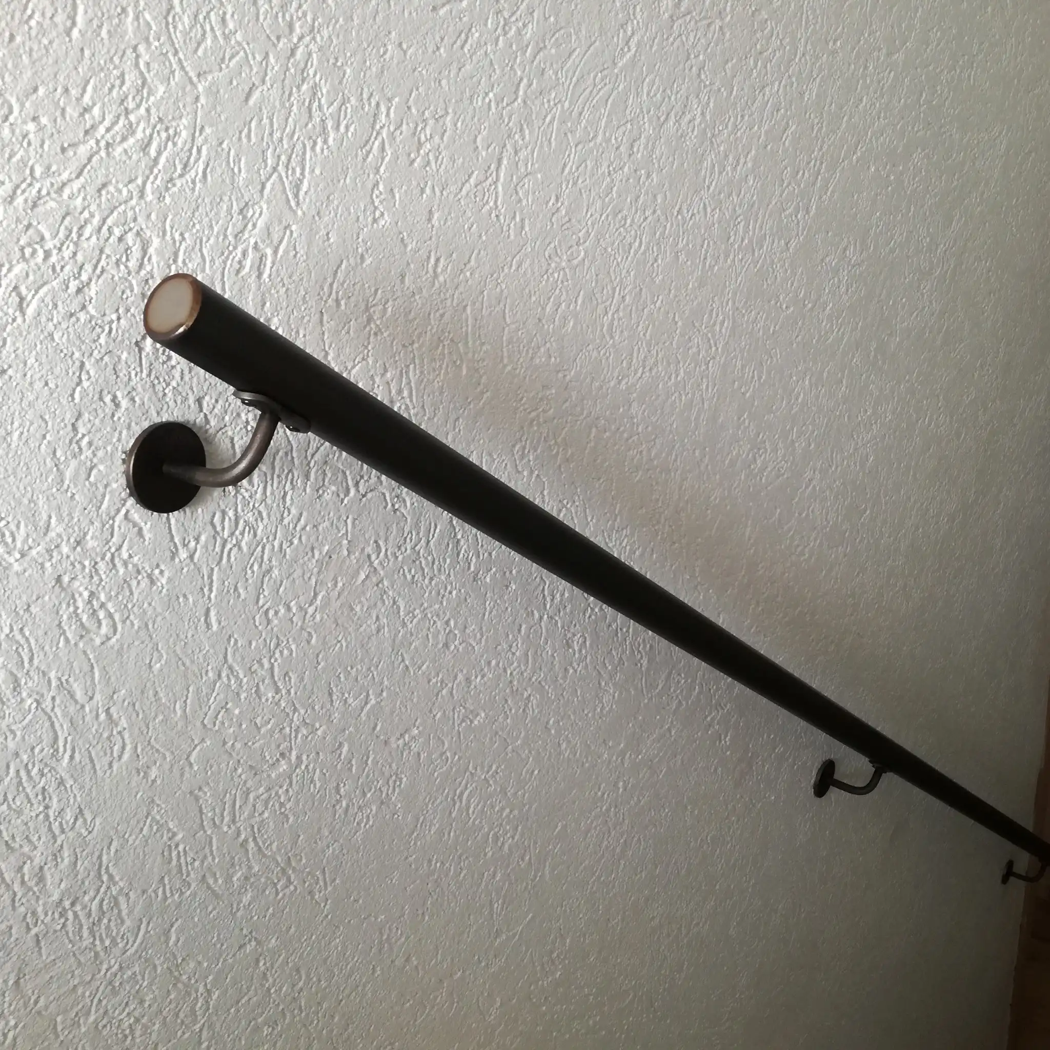 Handlauf Stahl - rund - nach Maß - von 30 cm bis 595 cm - Stahl. Ein runder Handlauf aus Stahl mit einem Durchmesser von 42,4 mm. Dieser Stahlhandlauf ist mit einer transparenten Pulverbeschichtung versehen. Der unbehandelte Stahl sieht rustikal aus. Bitte beachten Sie: Es können kleine Unebenheiten, Farbunterschiede und möglicherweise etwas Patina auf der Oberfläche sichtbar sein, hierdurch können die Farbtöne der Halter und Handläufe etwas voneinander abweichen. Ein robuster, runder Treppenhandlauf aus Eisen mit einem Industrie-Look, ideal als stilvoller Blickfang in Ihrer Innenausstattung.