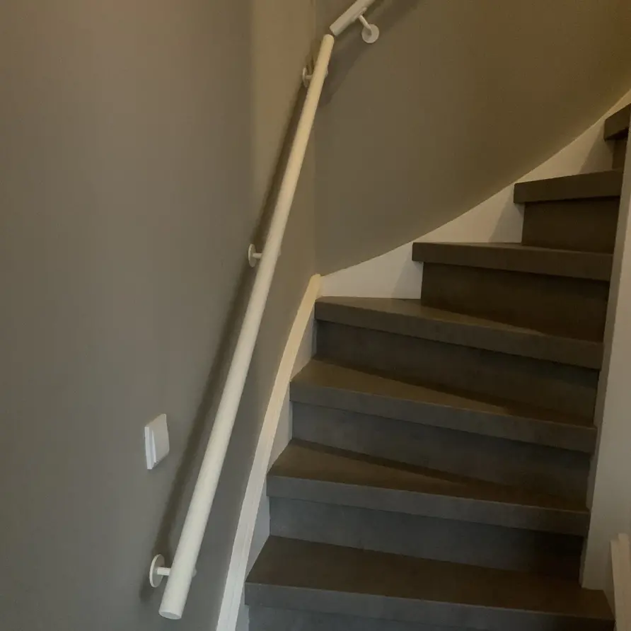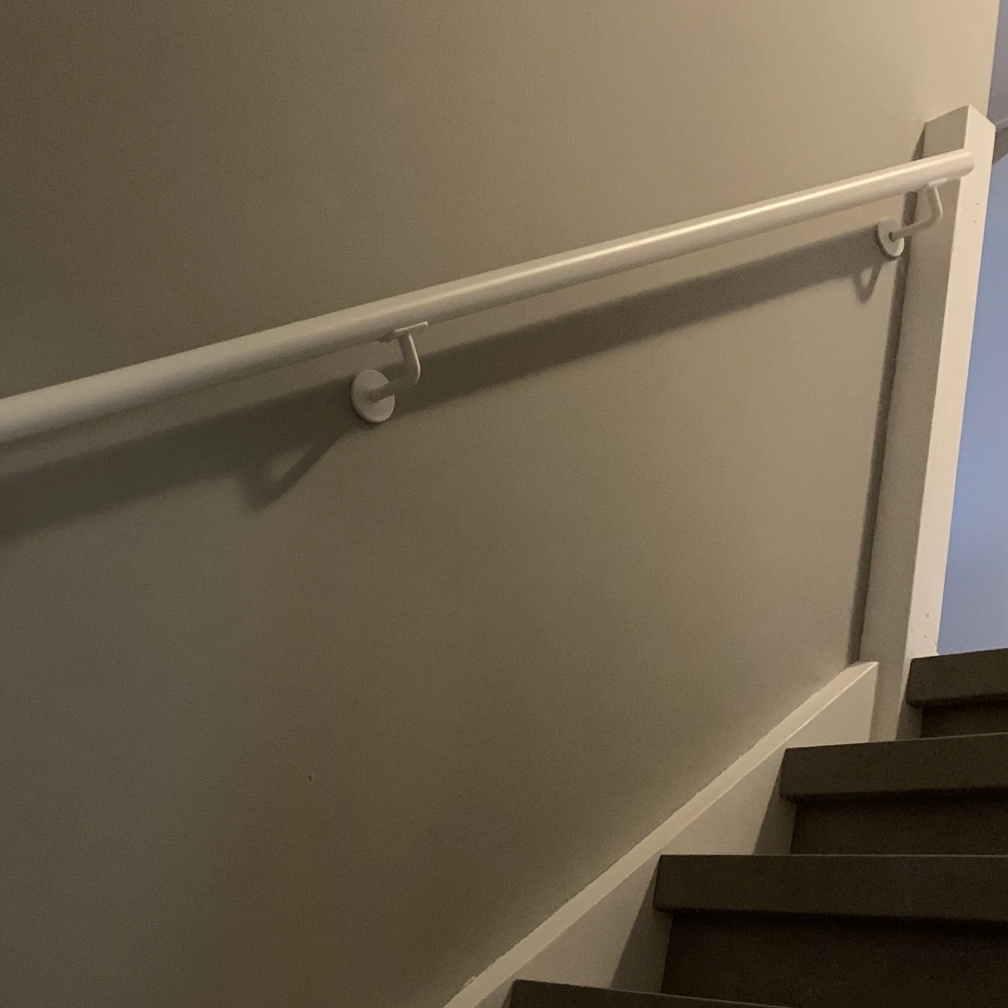 Ein runder Handlauf weiß mit einem Durchmesser von 42,4 mm. Ein handlicher Treppenhandlauf in Weiß aus Metall mit populäre Typ 3 Halterungen. Dieses Treppengeländer wird nach Maß gefertigt und mit den kompletten Befestigungsmaterialien geliefert. Lesen Sie mehr