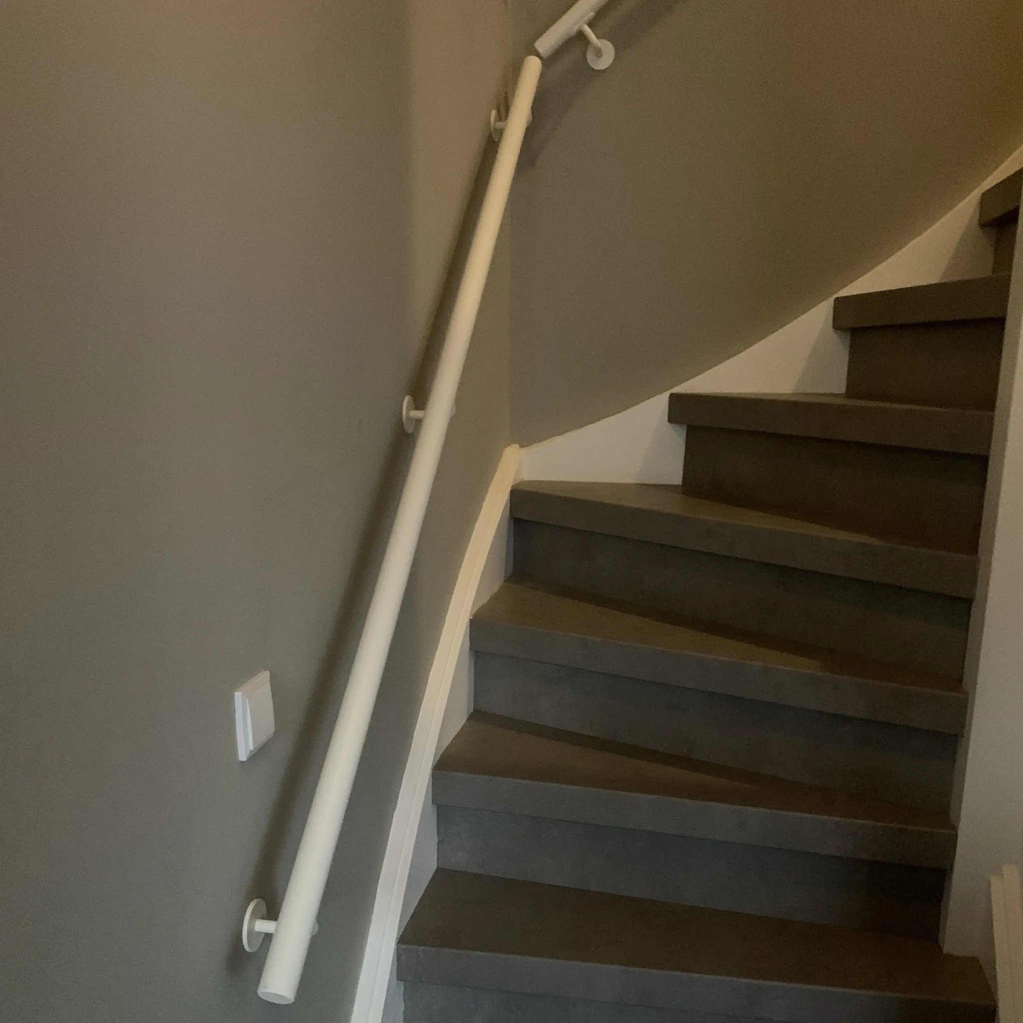 Handlauf weiß - rund - mit Handlaufhaltern Typ 3 - nach Maß - Treppengeländer Metall / Stahl beschichtet - RAL 9016, 9010 oder 9001