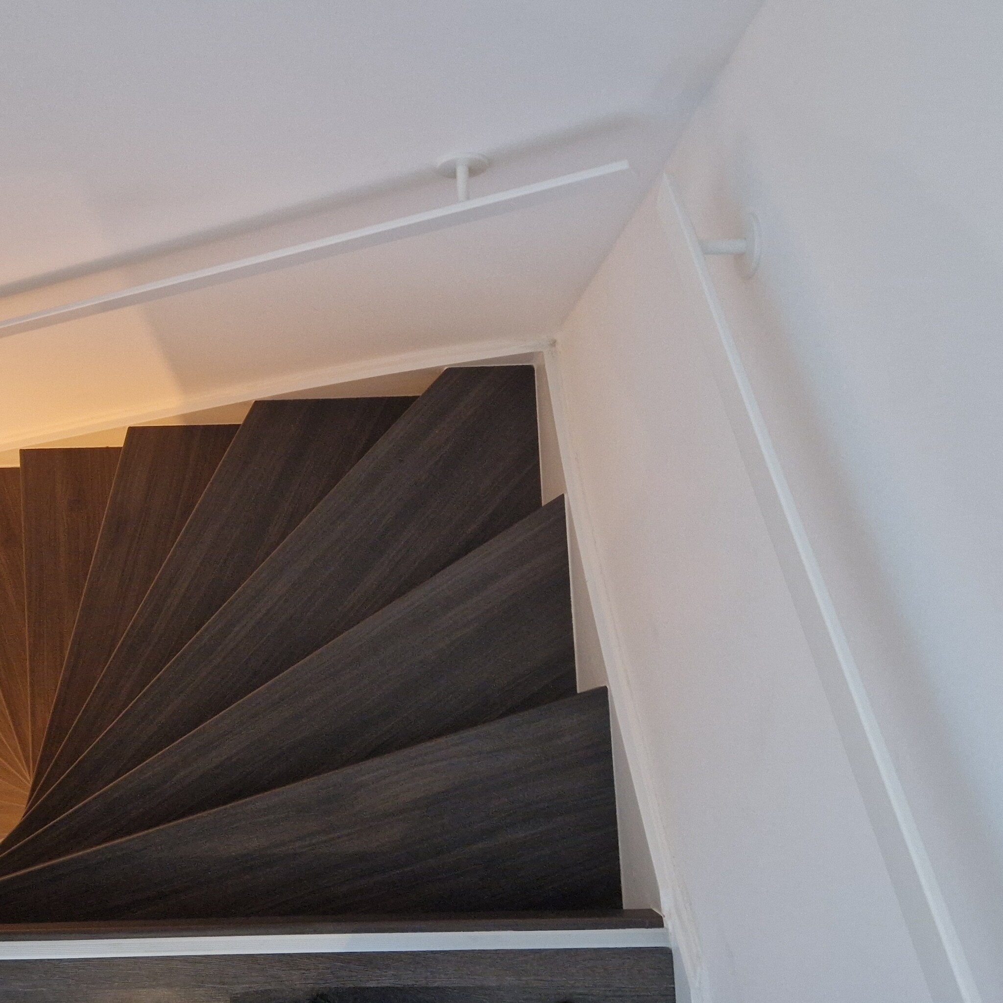 Ein rechteckiger Handlauf weiß von 40x10 mm: Ein schlanker Treppenhandlauf in Weiß aus Metall mit moderne Typ 5 Halterungen. Dieses Treppengeländer wird nach Maß gefertigt und mit den kompletten Befestigungsmaterialien geliefert. Lesen Sie mehr