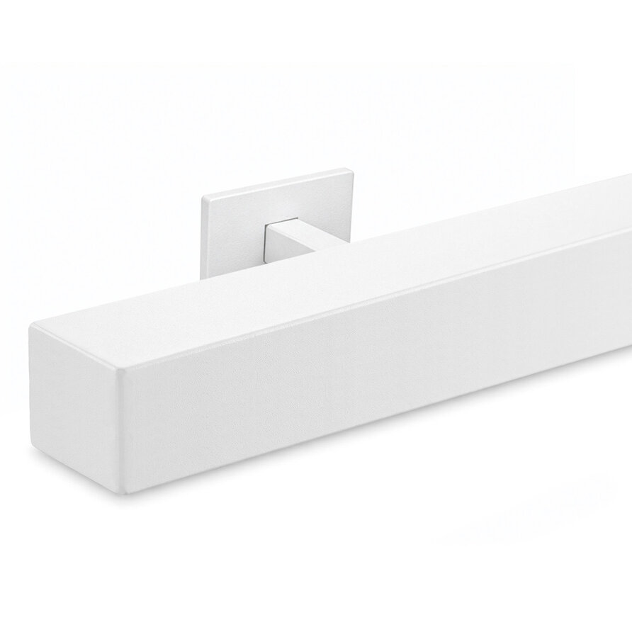 Ein quadratischer Handlauf weiß von 40x40 mm: Ein robuster eckiger Treppenhandlauf in Weiß aus Metall mit geradlinige Typ 16 Halterungen. Dieses Treppengeländer wird nach Maß gefertigt und mit den kompletten Befestigungsmaterialien geliefert. Lesen Sie mehr
