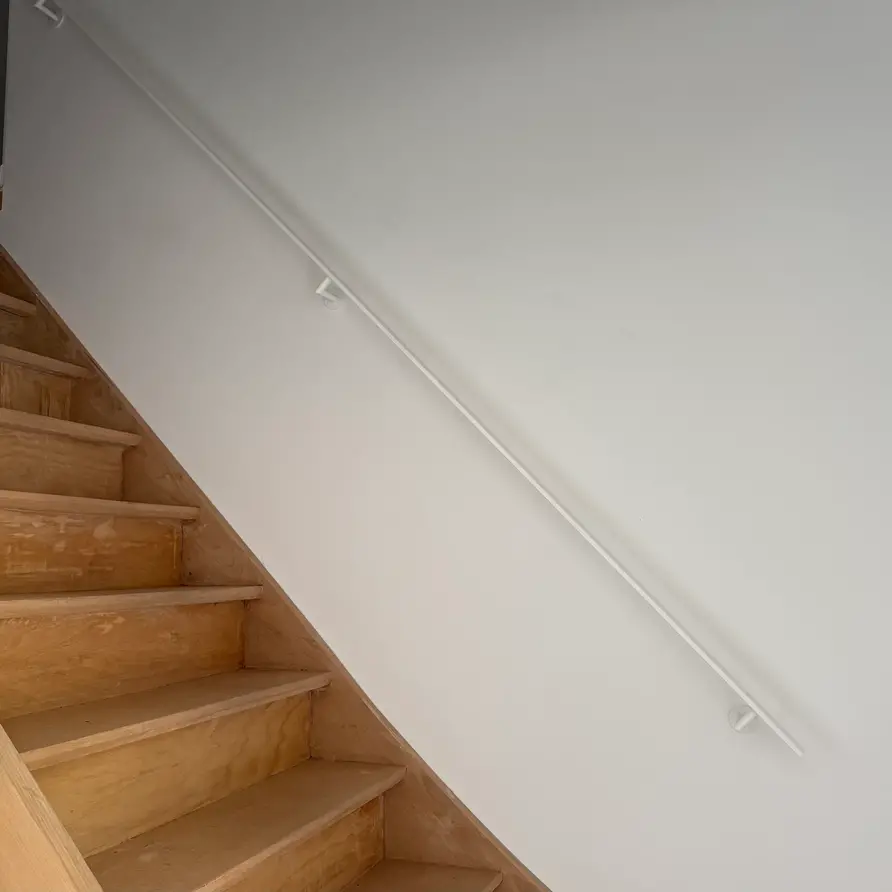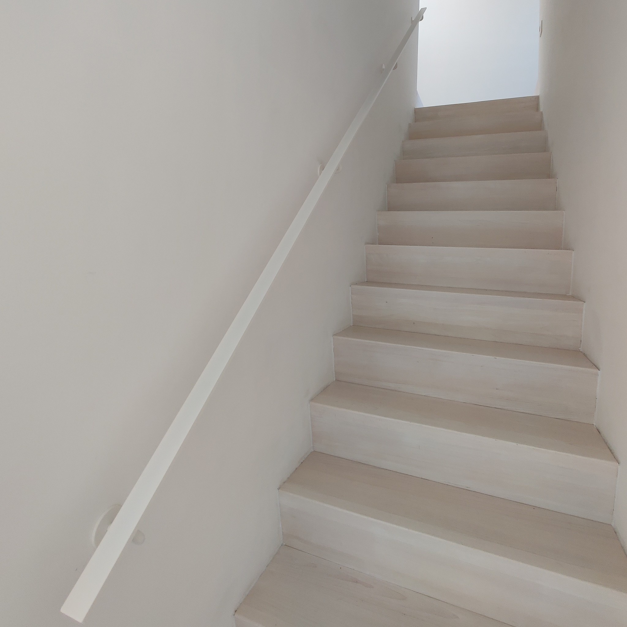 Ein rechteckiger Handlauf weiß von 40x10 mm: Ein schlanker Treppenhandlauf in Weiß aus Metall mit trendigen Typ 3 Luxus Halterungen. Dieses Treppengeländer wird nach Maß gefertigt und mit den kompletten Befestigungsmaterialien geliefert. Lesen Sie mehr