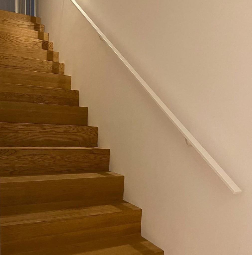 Ein rechteckiger Handlauf weiß von 40x15 mm: Ein stilvoller Treppenhandlauf in Weiß aus Metall mit stylische Typ 7 Luxus Halterungen. Dieses Treppengeländer wird nach Maß gefertigt und mit den kompletten Befestigungsmaterialien geliefert. Lesen Sie mehr