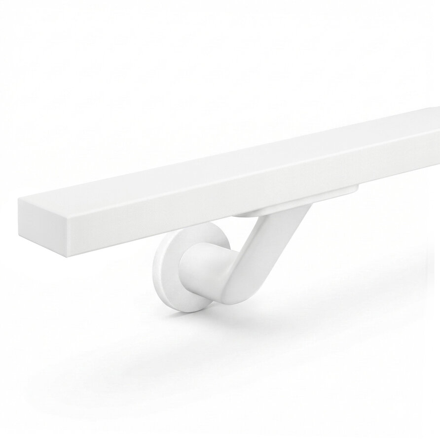 Handlauf weiß - eckig (40x20 mm) - mit Handlaufhaltern Typ 7 Luxus - nach Maß - Treppengeländer Metall / Stahl beschichtet - RAL 9016, 9010 oder 9001