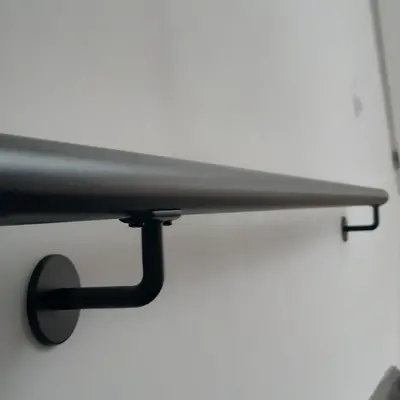 Befestigung an der Wand: Mit 1 Stockschraube (unsichtbar). Sie empfangen - pro Handlaufhalterung schwarz - 1 Edelstahl Stockschraube M8 + 1 Dübel M10.