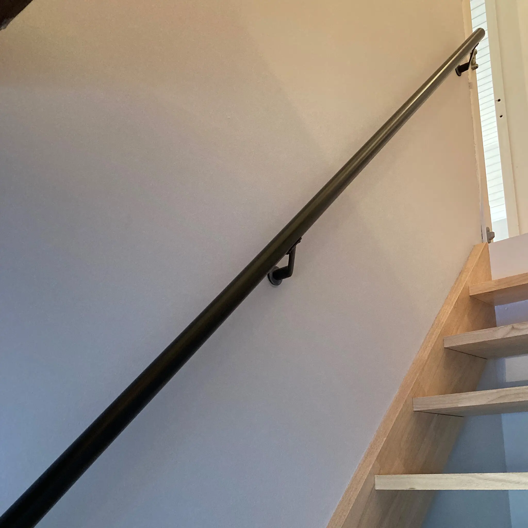 Ein runder Handlauf schwarz mit einem Durchmesser von 42,4 mm. Ein ansprechender Treppenhandlauf schwarz aus Metall mit stylische Typ 7 Luxus Halterungen. Dieses Treppengeländer wird nach Maß gefertigt und mit den kompletten Befestigungsmaterialien gelief Lesen Sie mehr
